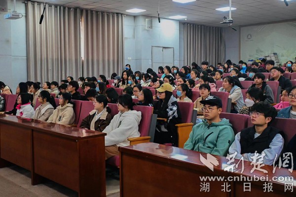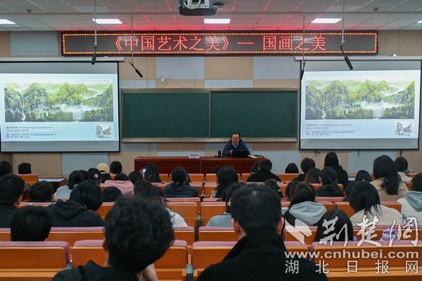 讲座开始前,同学们通过《大写湖北人》专题片,了解了董继宁从一名对艺术全然无知的知识青年到艺术大家再到传播艺术的领路人,立志“为祖国山河立传”的感人事迹。