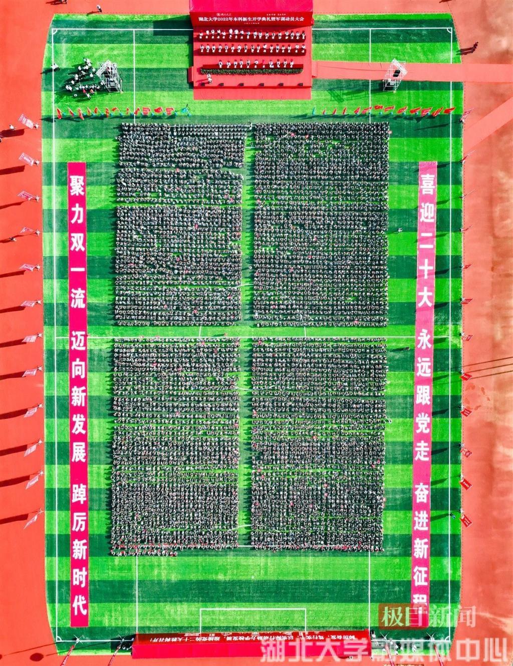 “谨记湖大校训,日思日睿、笃志笃行;秉承湖大精神,自强不息、克难奋进。立德修身、勤学善为,知行统一、励志成才。做时代新人,为实现中华民族伟大复兴而努力奋斗!”在新投入使用、占地面积约1.6万平方米的400米标准化田径运动场上,大学新生们面向未来,庄严宣誓。