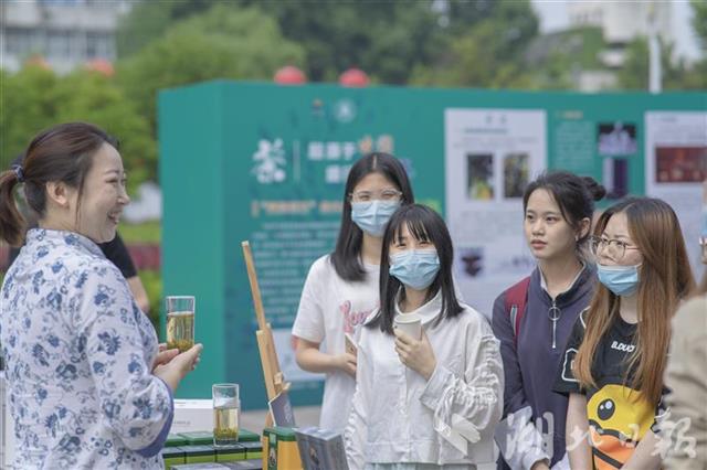 此次活动的一个重要目的,就是用深厚的茶文化熏陶年轻心灵,让青年学生知茶、爱茶。湖大举行了丰富多彩的茶文化进校园活动,包括茶文化广场展、校园茶会、汉服秀、知识竞赛等,吸引了不少学生现场感受“舌尖上的茶文化”。