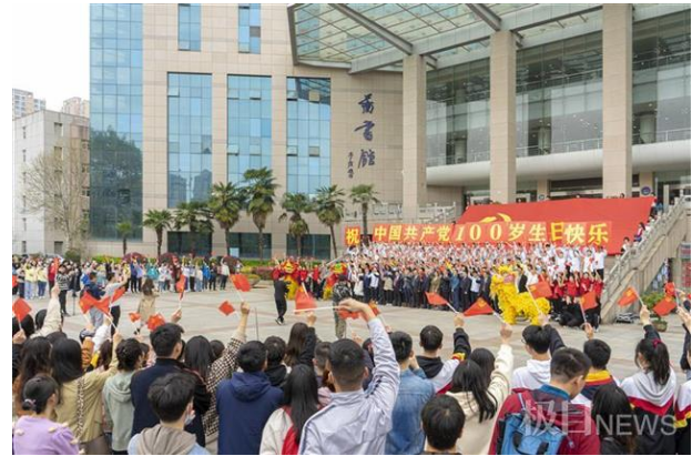 “百年沧桑,不忘初心,朝气蓬勃,依然少年。”快闪活动现场,作为出镜歌手的大二学生刘印奇说,很荣幸参与到献礼建党百年的快闪活动,百年大党正青春,激励当代青春少年向党心。