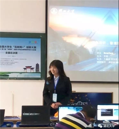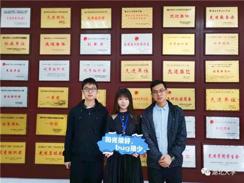 在得知要与清华、复旦、哈工大等众多名校竞争时,巨大的压力摆在他们面前。但就像他们的团队名称“Deep Tech”(取意深度技术与知识)所代表的意义,每一个成员都深入精进技术,认真钻研,不被外界所影响。在整个备赛过程中,他们根据每个人所擅长的方向,明确分工,效果十分显著。邢文圣是“前端高手”,负责页面的设计及交互;吴珊负责后台服务代码的编写及交互;张友元负责后台框架的搭建。团队里的每个成员都很认真地去完成各自的工作,在完成自己的任务后还经常主动分担团队其他人的任务,真真正正地凝成一个团体。