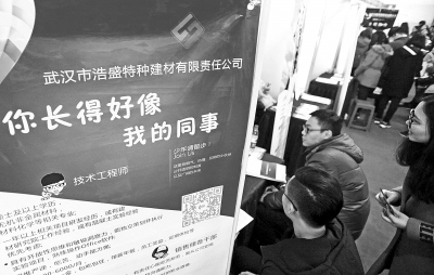 为了揽人才,各招聘单位也是用尽了心思。武汉市浩盛特种建材有限责任公司的招聘广告牌,很是时尚温馨,“你长得好像我的同事。少年请留步。”该公司招聘工作人员程茜介绍,“学生的创意是无限的,我们希望用时尚招聘语言,来吸引大学生。”武汉史莱姆科技有限公司的展板上直接书写“三缺一,就差你了!”其职位要求上,也是让表情包占据“半壁江山”。