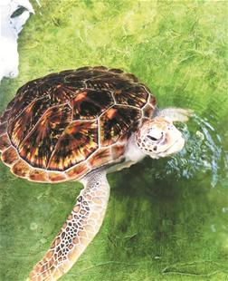 基地水池内有大量残疾海龟,它们需要救治并进行适应性训练。对于人为或自然因素导致四肢不健全的海龟,工作人员会非常细心训练。看着这些努力游动着的残疾海龟,她心疼不已。“身体残缺可能危及不了生命,但因生存能力减弱,很难长久生存。”她说,我们需要警醒那些猎捕、伤害海龟的人。