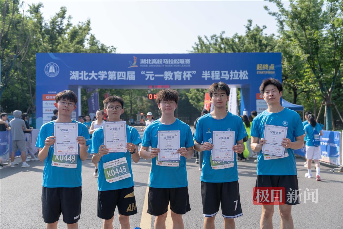 “湖马”现场,还有少年健将。正在湖大附中就读的余思渊仅用52分钟就跑完了健康跑。“今年拿到了自己的完赛证书,我很开心!”他说。另有四名来自湖大附小的学生,也携手完成了自己的第一次马拉松比赛。
