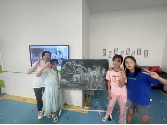 “二月天杨柳醉春烟,三月三来山青草漫漫……”7月19日-23日,实践团队来到均县镇留守儿童托管中心开展“阳光假期·文化传承”暑期夏令营活动。合唱课上,在团队成员李沛锦的悉心指导下,孩子们以民歌曲调唱响流行乐曲《上春山》。绘画课上,团队成员苏欣怡与学生们共同绘制《我的家乡》,生动的画作在黑板上徐徐铺展。团队成员张子灵以《水法》为内容,为孩子们上法治课,提升孩子们珍惜水资源意识。活动中,团队成员还与孩子们共同观看丹江口水库修建纪录片,学习爱水护水知识。