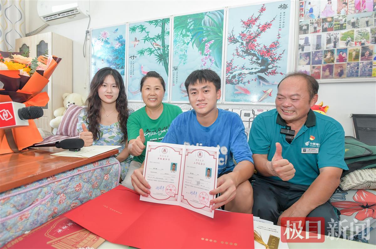 看着父亲常年风吹日晒变得黝黑的面庞,坐在一边的熊文康有些动容地说:“这封通知书因为是父亲亲自投递的,有了更加特别的意义!收到通知书,意味着之前的努力都没有白费,谢谢父母一直以来的付出。”